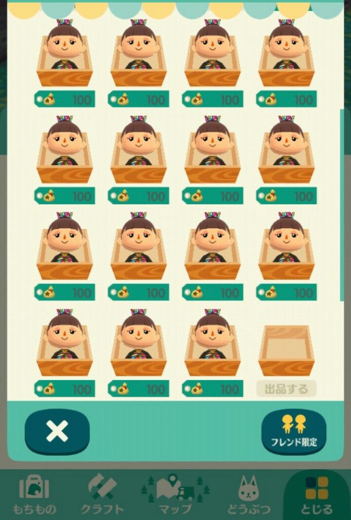 3個売り、5個売りだとしてそれを集める時間と20枠も出品する手間を考えると1個づつ初期設定の100ベルのまま並べるのが楽だからだ